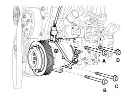 1. Make sure of the length of compressor mounting bolts, and then tighten it A->B->C order.