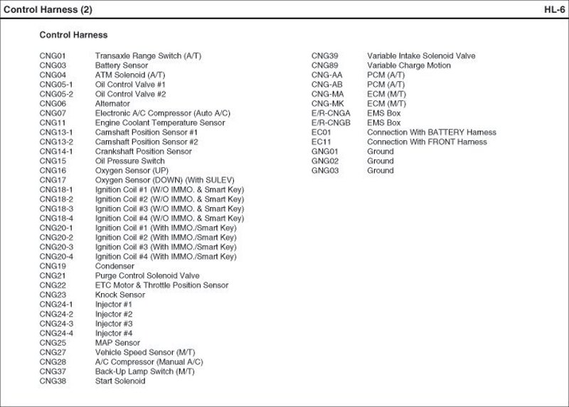 Control Harness Index: