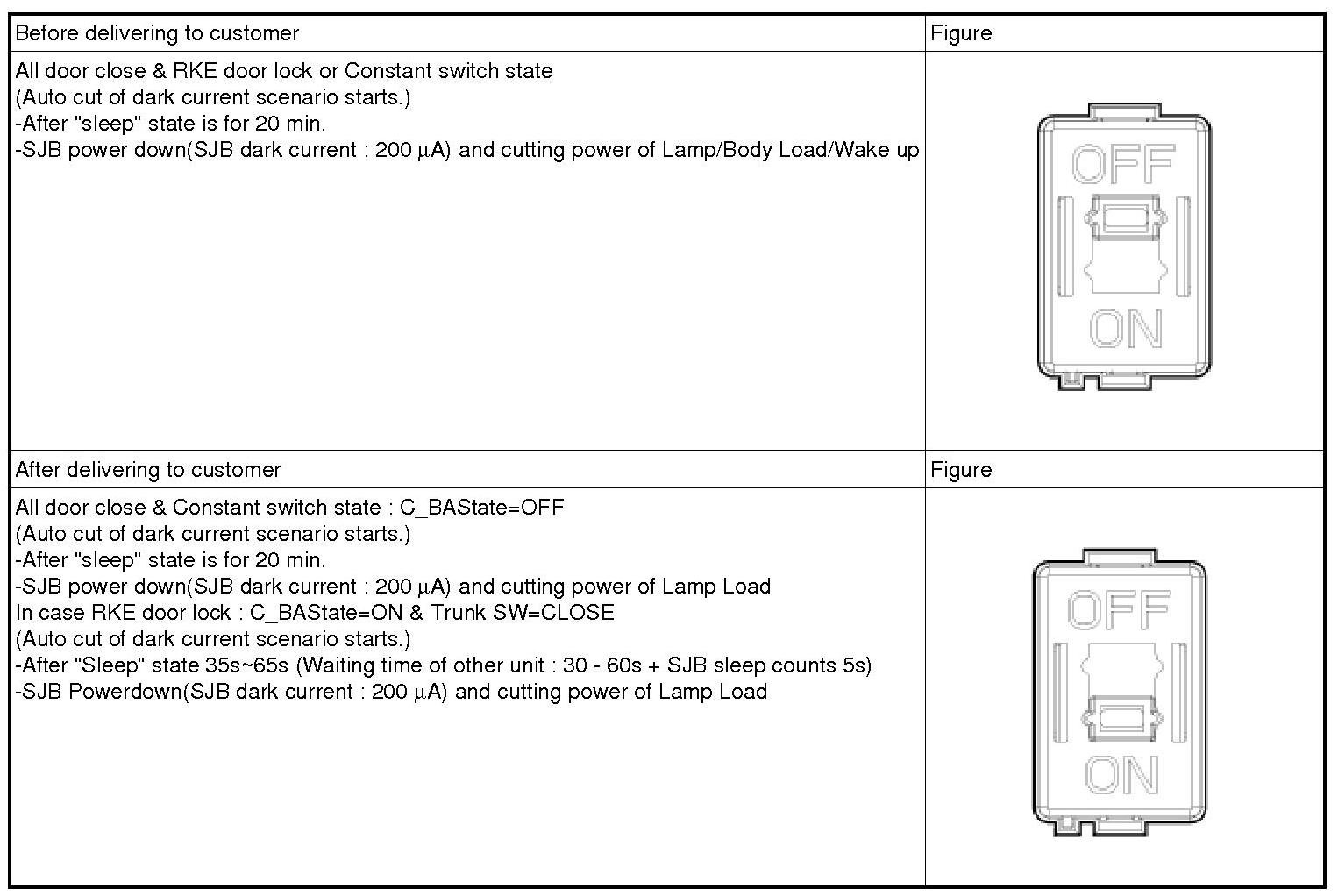 A. "Sleep" condition : IG OFF, constant input switch, CAN network doesn't activate.