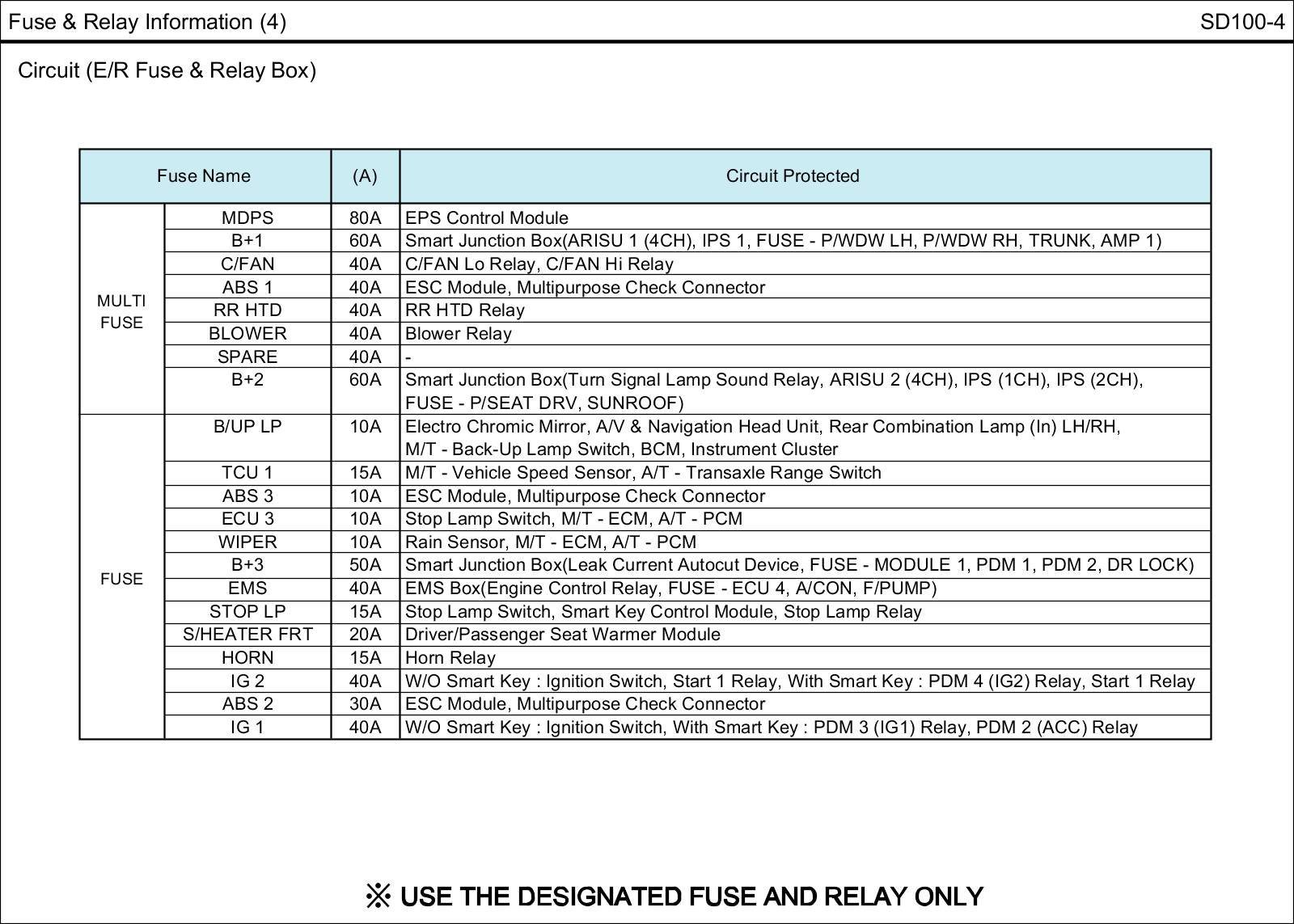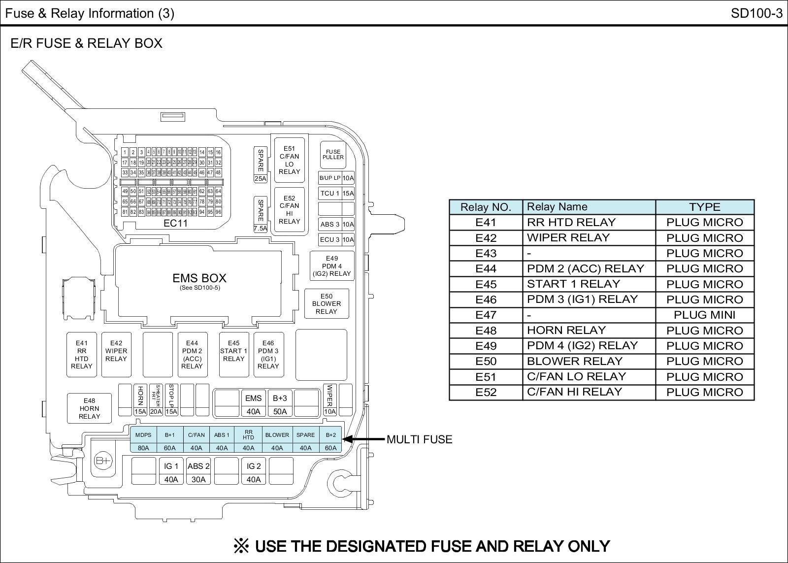 E/R Fuse & Relay Box Circuit Details: