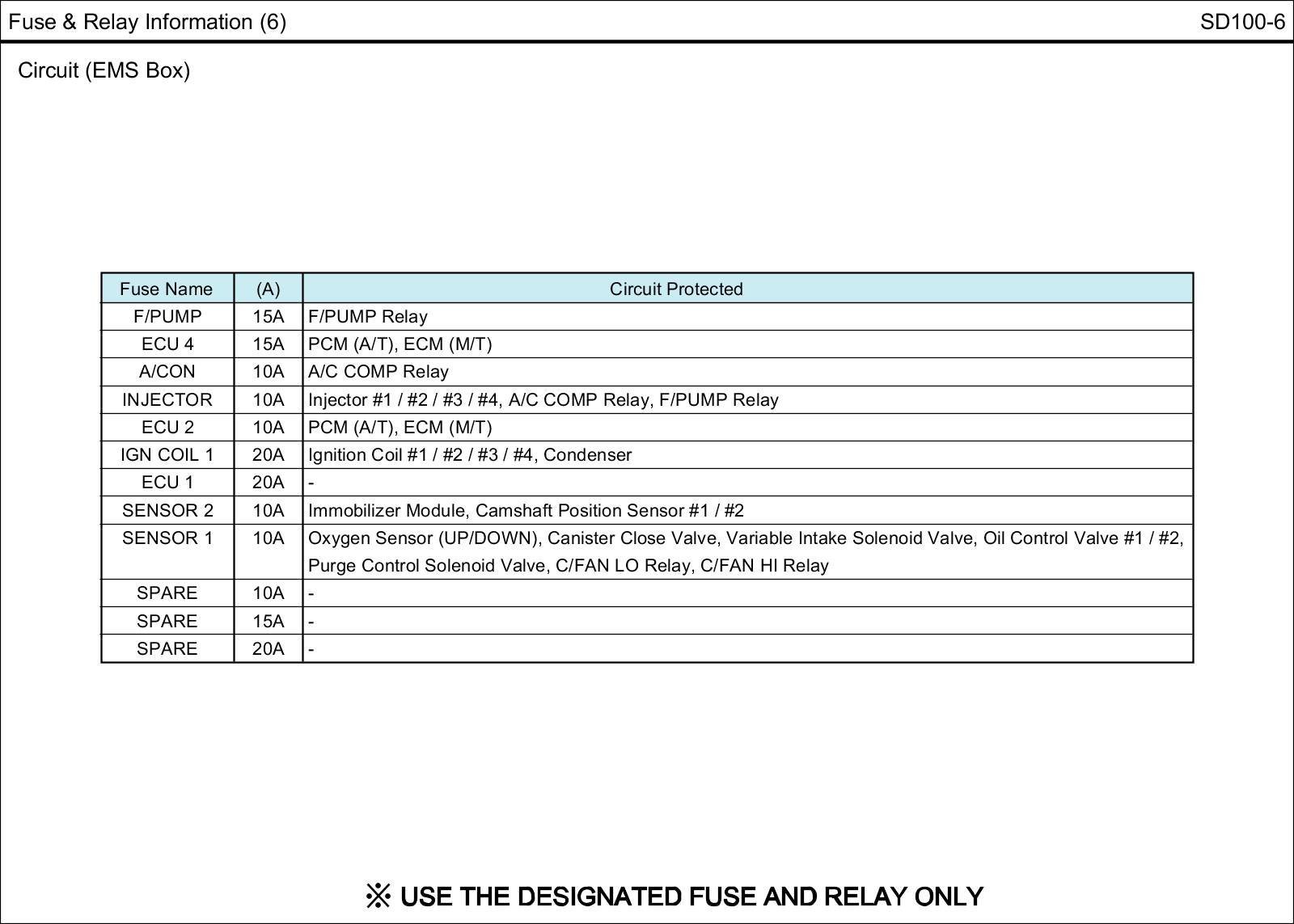 Fuse & Relay Information