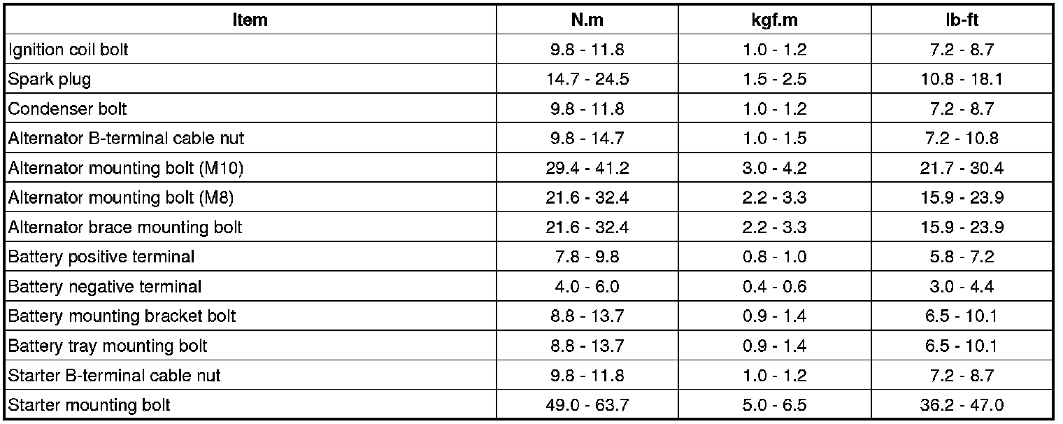Starting and Charging: Specifications