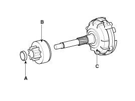 9. Disconnect the stopper (A), overrunning clutch (B) and internal gear (C).