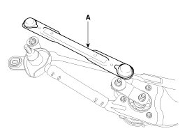 8. Hold the wiper motor crank arm and remove the upper linkage (A) from the wiper motor crank arm.