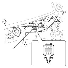 1. Remove the connector (A) from the wiper motor.