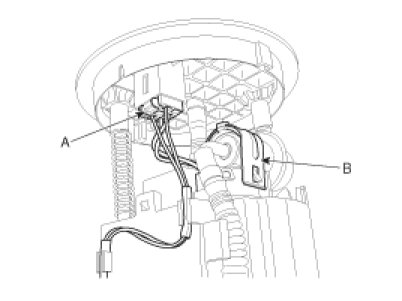 2. Disconnect the electric pump & sender wiring connector (A) and remove the regulator cap (B).