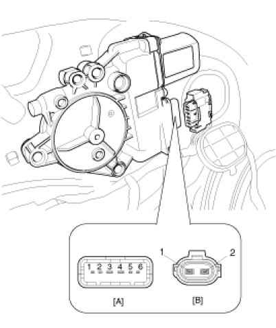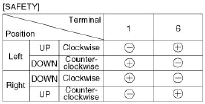 4. Connect the motor terminals directly to battery voltage (12V) and check that the motor operates smoothly. Next, reverse the polarity and check that the motor operates smoothly in the reverse direction. If the operation is abnormal, replace the motor.
