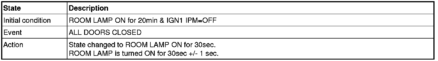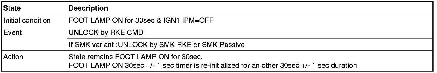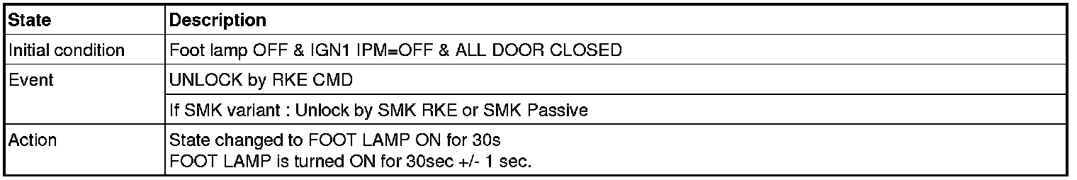 Any door opens at terminal OFF state without FOB in. After transition to all door closed within 500msec, if the valid Fob is in side car and all door locked then IPM transmits SMK key reminder warning 2 command (SMK Warning