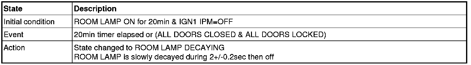 The "Door lock warning1" sound stops, when the activity timer elapsed or (ACC=OFF) or NOT (ALL DOORS CLOSED) or (FOB IN).