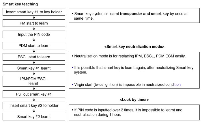 Starting is possible by following process after replacing new IPM , PDM, FOB key or ESCL.