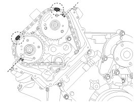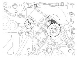 To install the timing chain with no slack between each shaft (cam, crank), follow the below procedure.