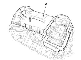11. Remove the upper oil pan (A).