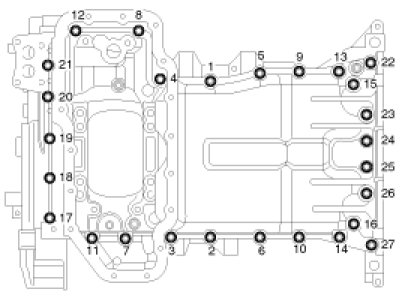 25. Install the lower oil pan.