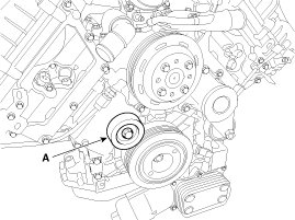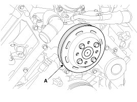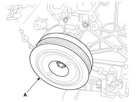 12. Remove the crankshaft pulley (A).
