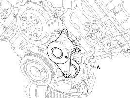 8. Remove the water pump pulley (A).