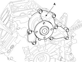 15. Remove the water pump (A).