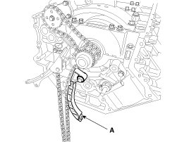 17. Remove the timing chain lower cover (A).
