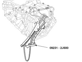 7. Hold the LH timing chain, guide and arm using the timing chain locking tool (SST : 09231-2J600).