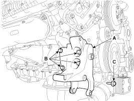 4. Remove the alternator bracket (A).