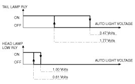 In the state of IGN1 ON, when multi function switch module detects auto light switch on, tail lamp relay output and head lamp low relay output are controlled according to auto light sensor's input.