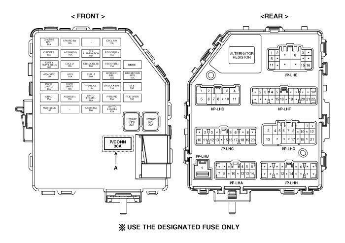 - In case of the hood open warning lamp on when the hood is closed, check the power connector in passenger compartment relay box located at the left lower side of instrument panel.