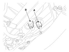 2. Disconnect the CVVT oil control valve connector (A-Intake) and (B-Exhaust).