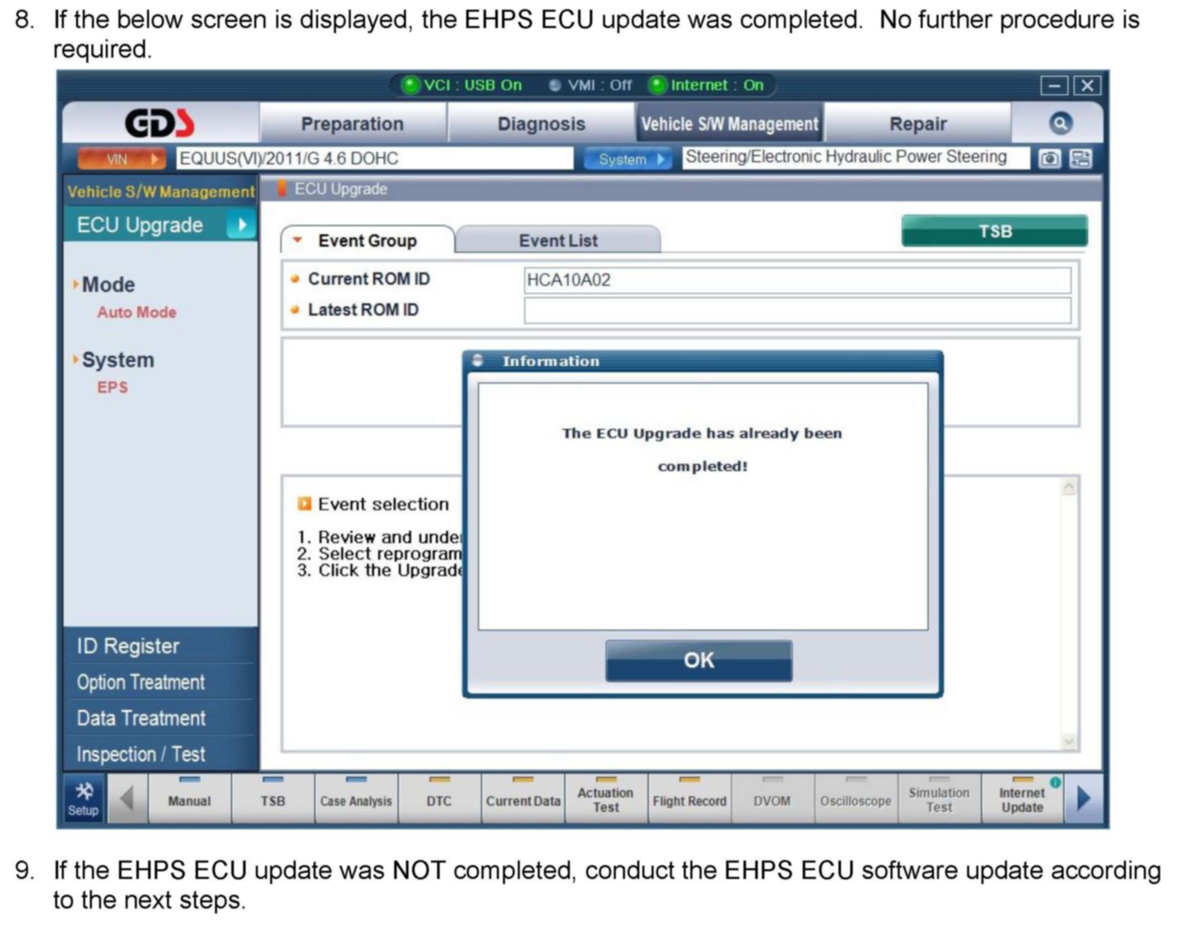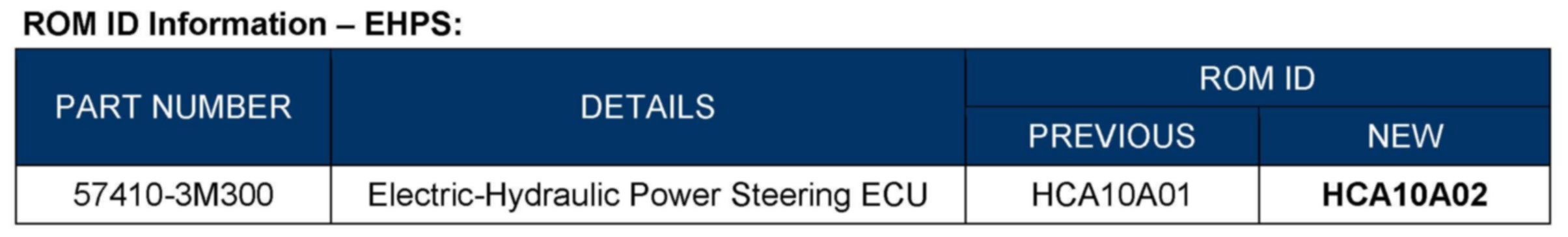 ^ Vehicles produced April 13, 2011 and later do not require the EHPS update procedure.