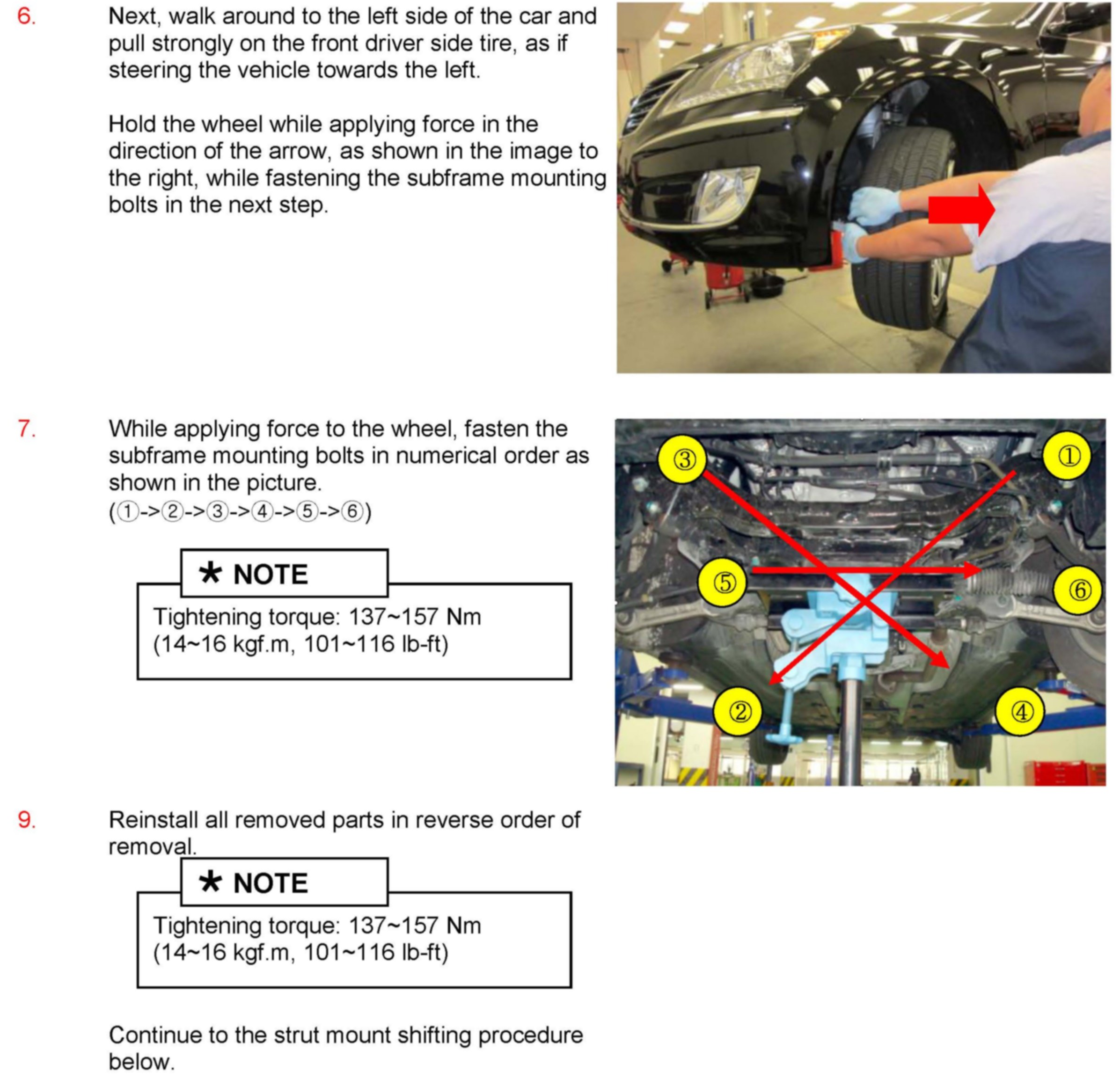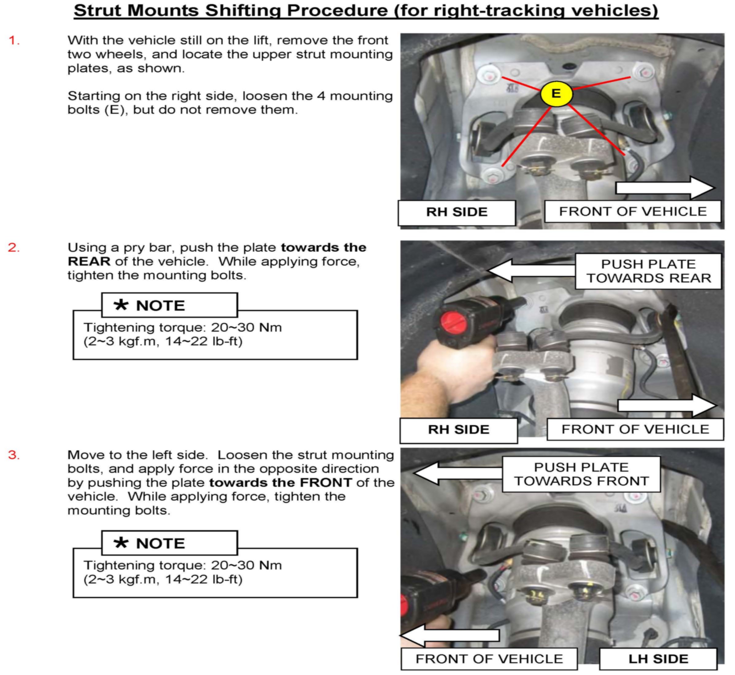 Strut Mounts Shifting procedure (for right-tracking vehicles)