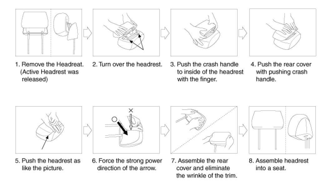 1. How to reassemble the Headrest which was released by rear (or front) Impact.