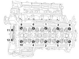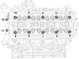 Cylinder head bolts (1 - 10) 32.4 - 36.3N.m(3.3 - 3.7kgf.m, 23.9 - 26.8lb-ft) + 88°~92°+ 118°~122°