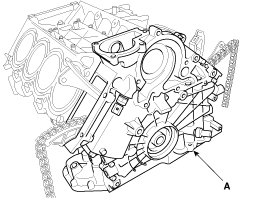 The dowel pins on the cylinder block and holes on the timing chain lower cover should be used as a reference in order to assemble the timing chain lower cover to be in exact position.