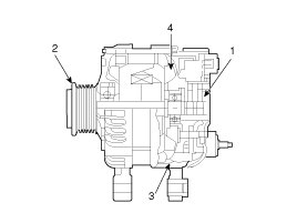 The main components of the alternator are the rotor, stator, rectifier, capacitor brushes, bearings, regulator and V-ribbed belt pulley.