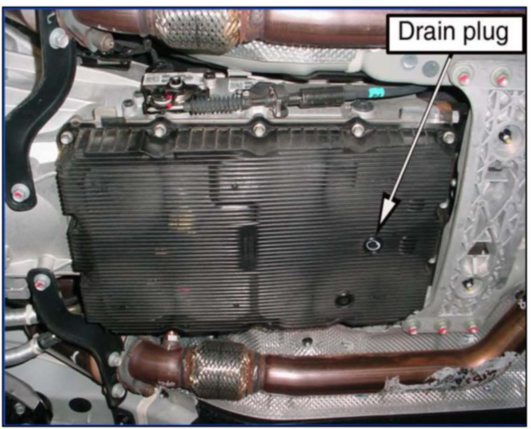 8. Use an 8 mm or 9/16" hex socket and remove the drain plug and drain the ATF.
