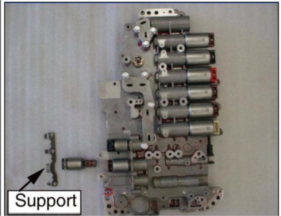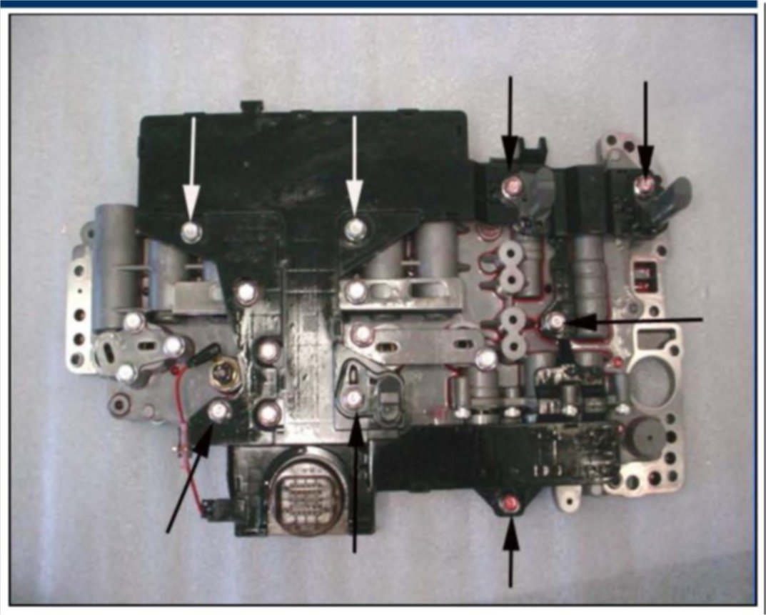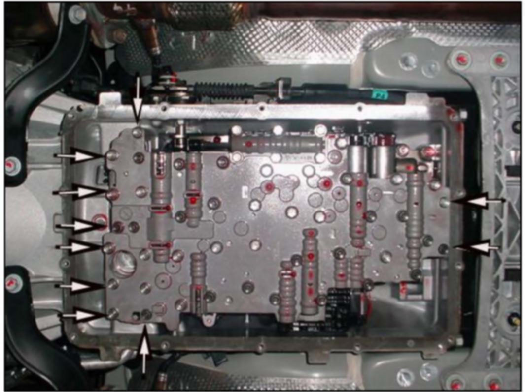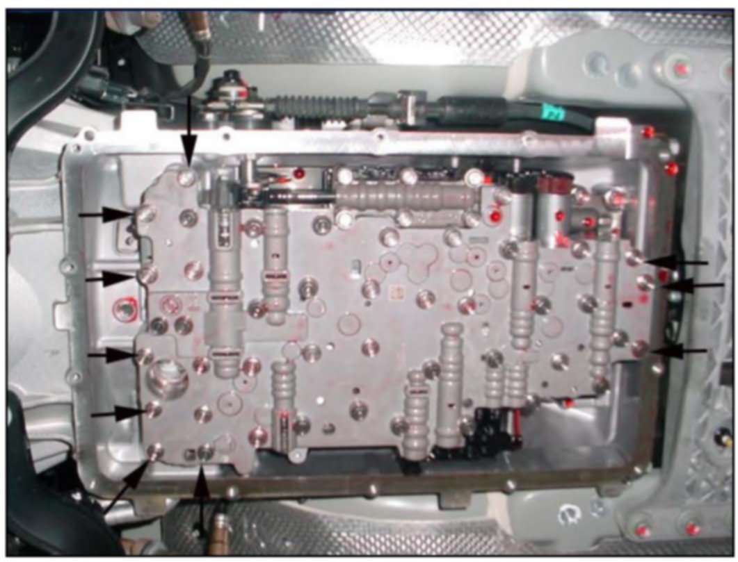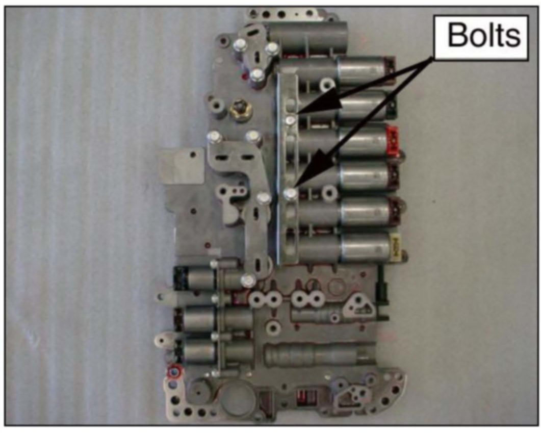 9. Remove the 10 bolts that secure the valve body to the case and remove the valve body.