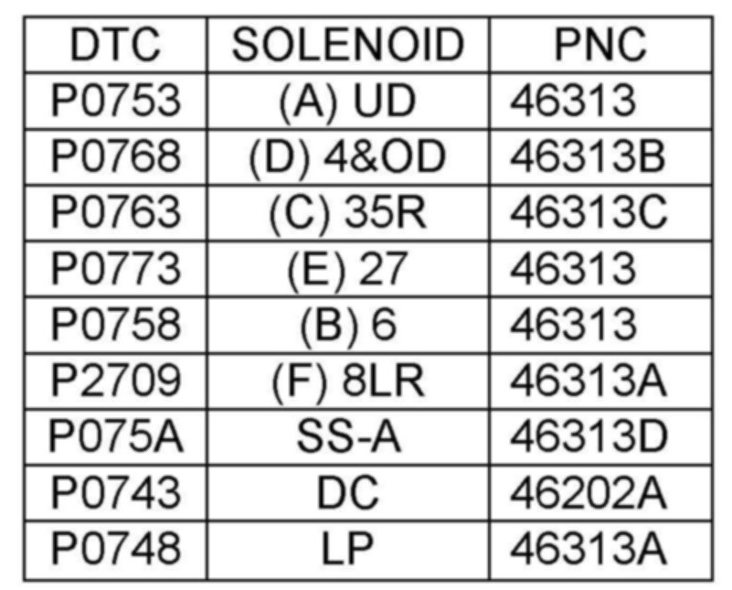 12. Refer to the solenoid DTC recorded in Step 1 and replace the related solenoid.