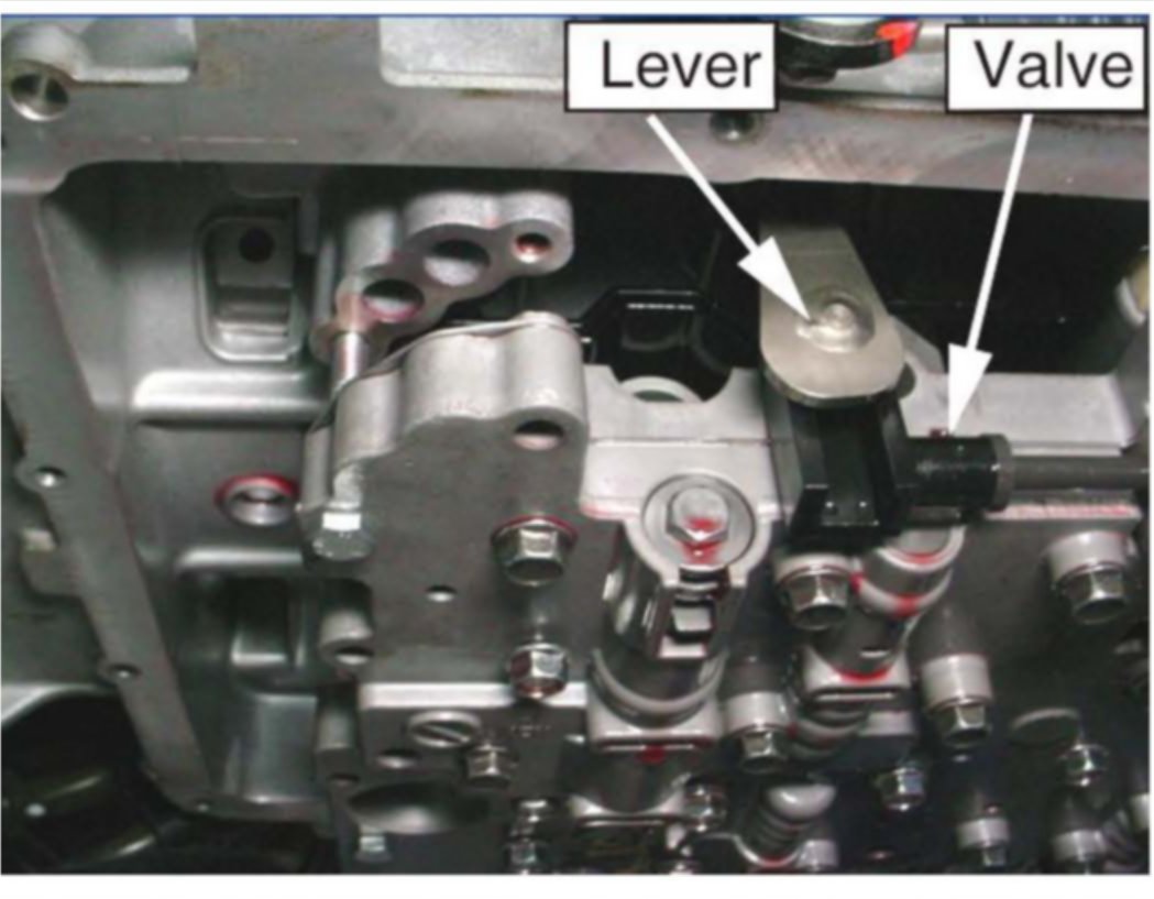 18. Carefully align the manual valve to the shift lever and install the new valve body.