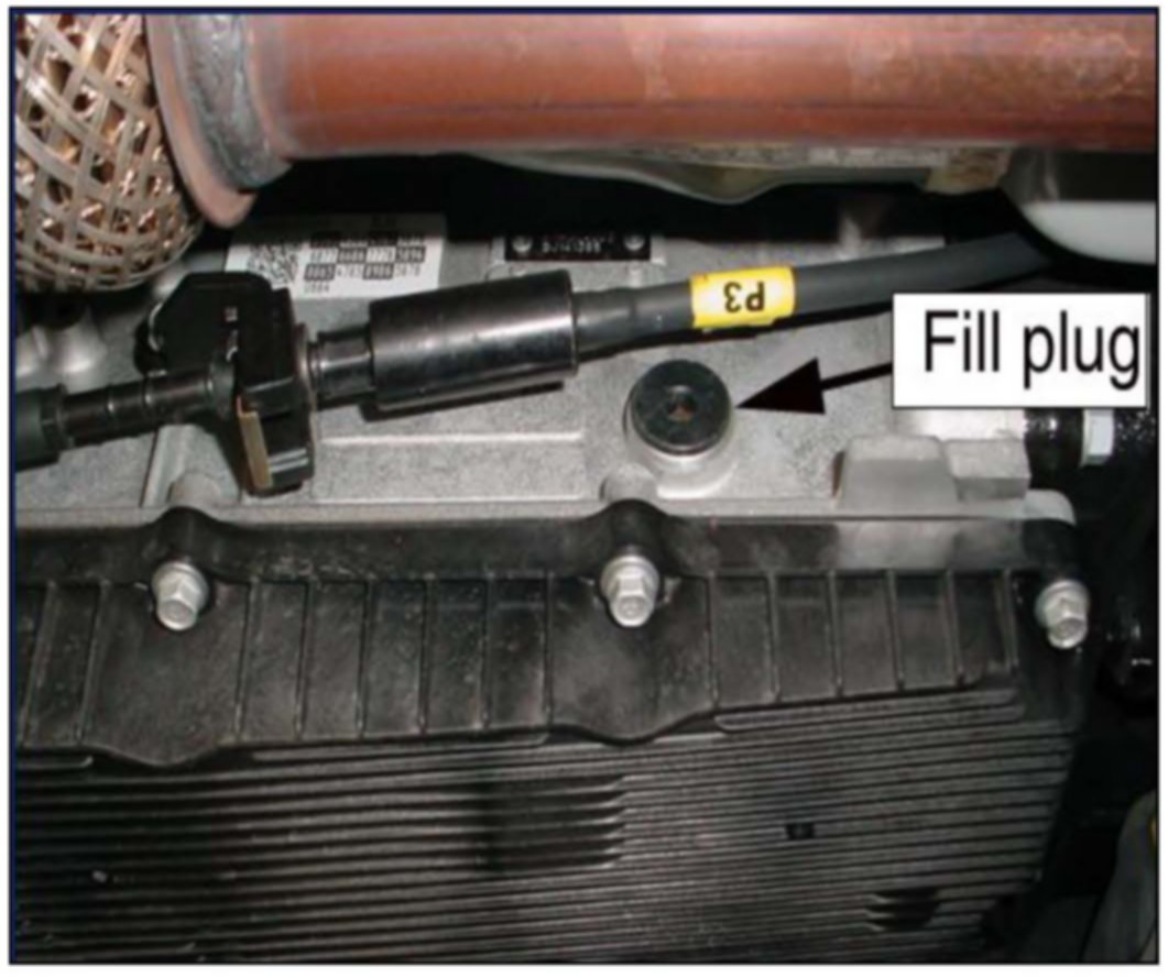 Use a fluid pump or suction gun to add approximately 4 quarts of SPH-IV-RR ATF through the fill plug.