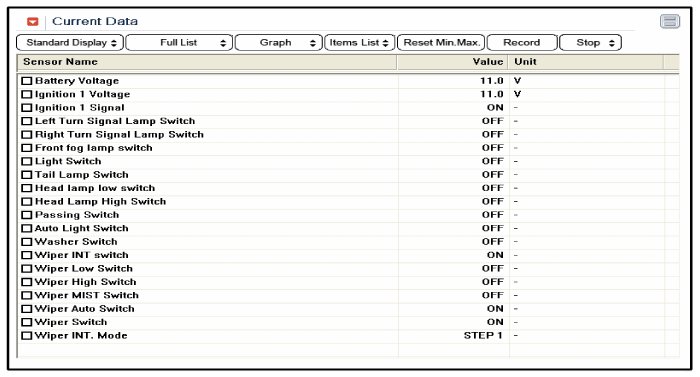 1. Check IPM input/output specification of windshield wiper/washer switch using the GDS. If the specification is abnormal, replace the windshield wiper/washer switch module.
