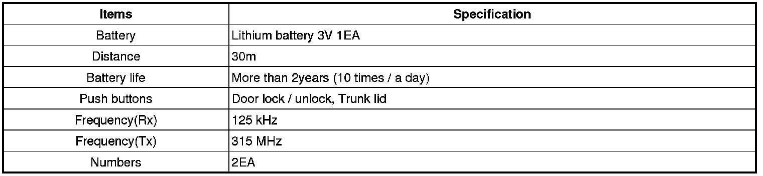 Keyless Starting System: Specifications