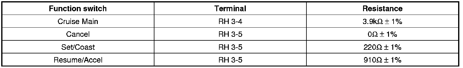 2. Measure resistance between terminals on the control switch when each function switch is ON (switch is depressed).