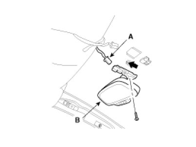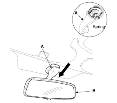 1. Push the inside rear view mirror base (A) down to remove to inside rear view mirror assembly (B).