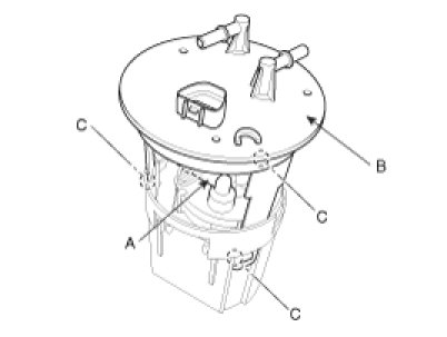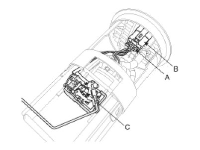 2. Disconnect the electric pump wiring connector (A) and the fuel sender connector (B).