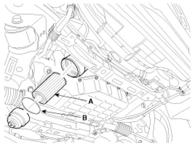 (5) Install a new oil filter element (A) and new O-ring (B).
