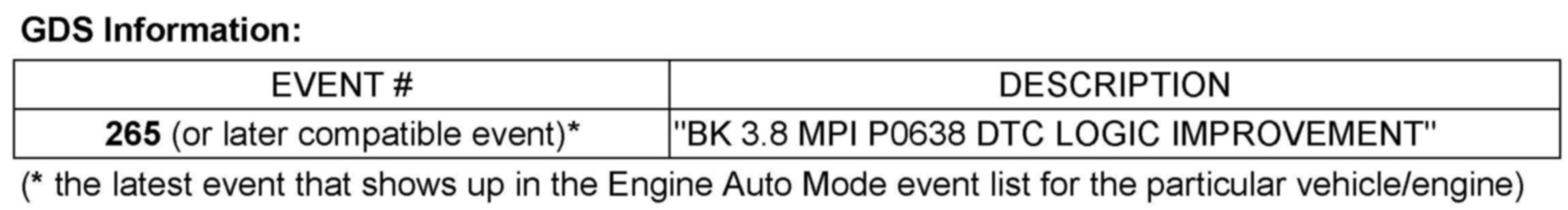 SUBJECT ECM UPDATE - MIL ON DTC P0638