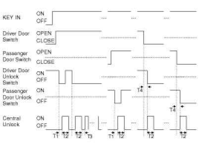 (4) Turn CENTRAL UNLOCK *4)ON during T1 when receiving TX UNLOCK signal.