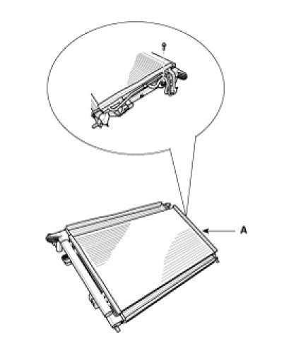 4. Remove 2 bolts, and then remove the condenser (A) by lifting it up. Be careful not to damage the radiator and condenser fins when removing the condenser.