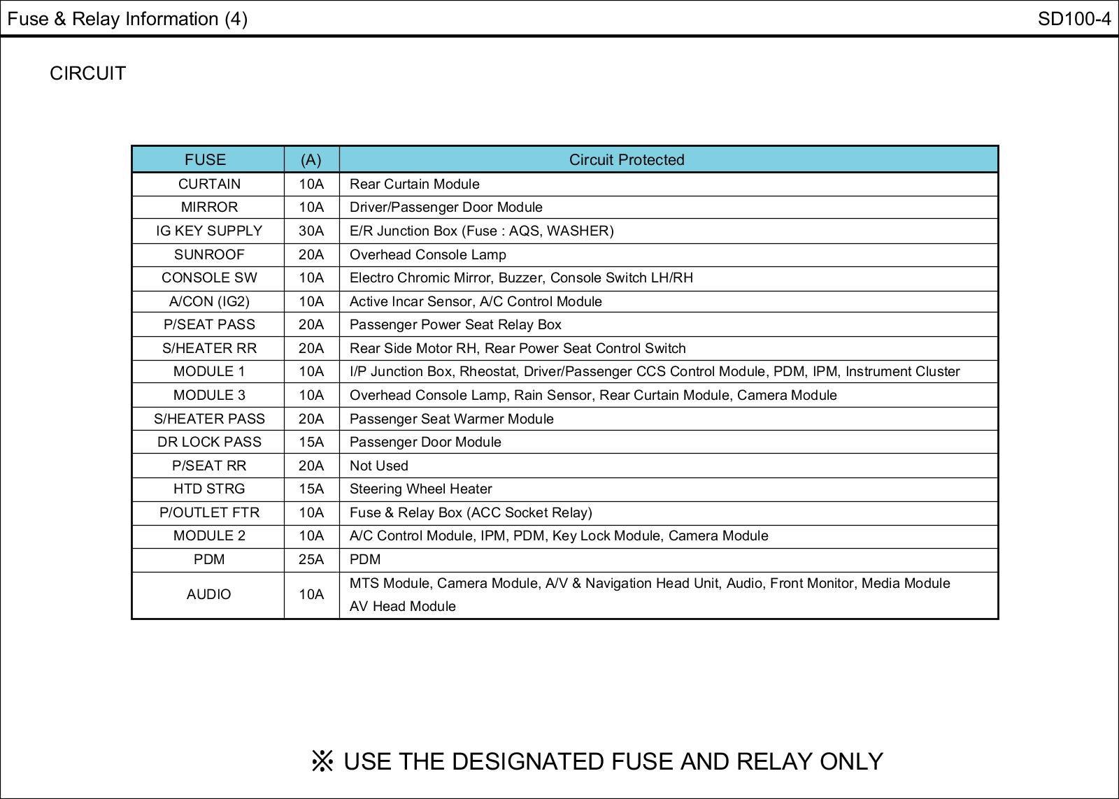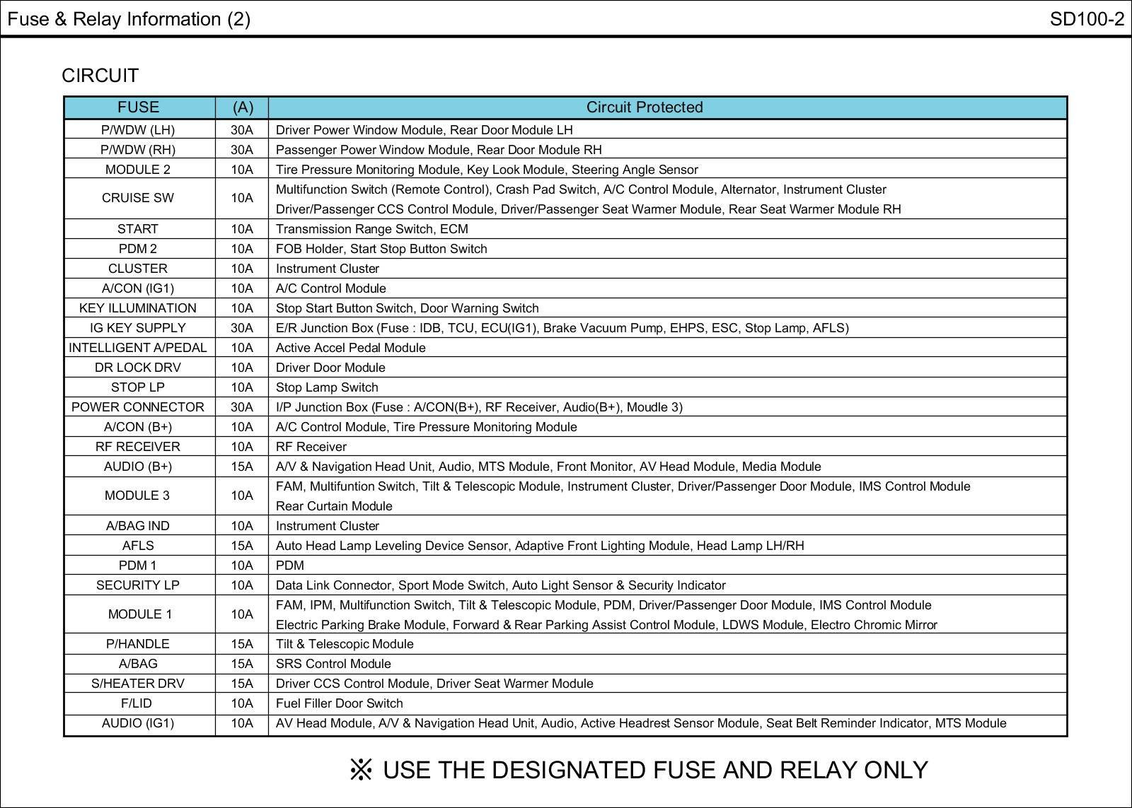 Fuse & Relay Box Circuit Details: