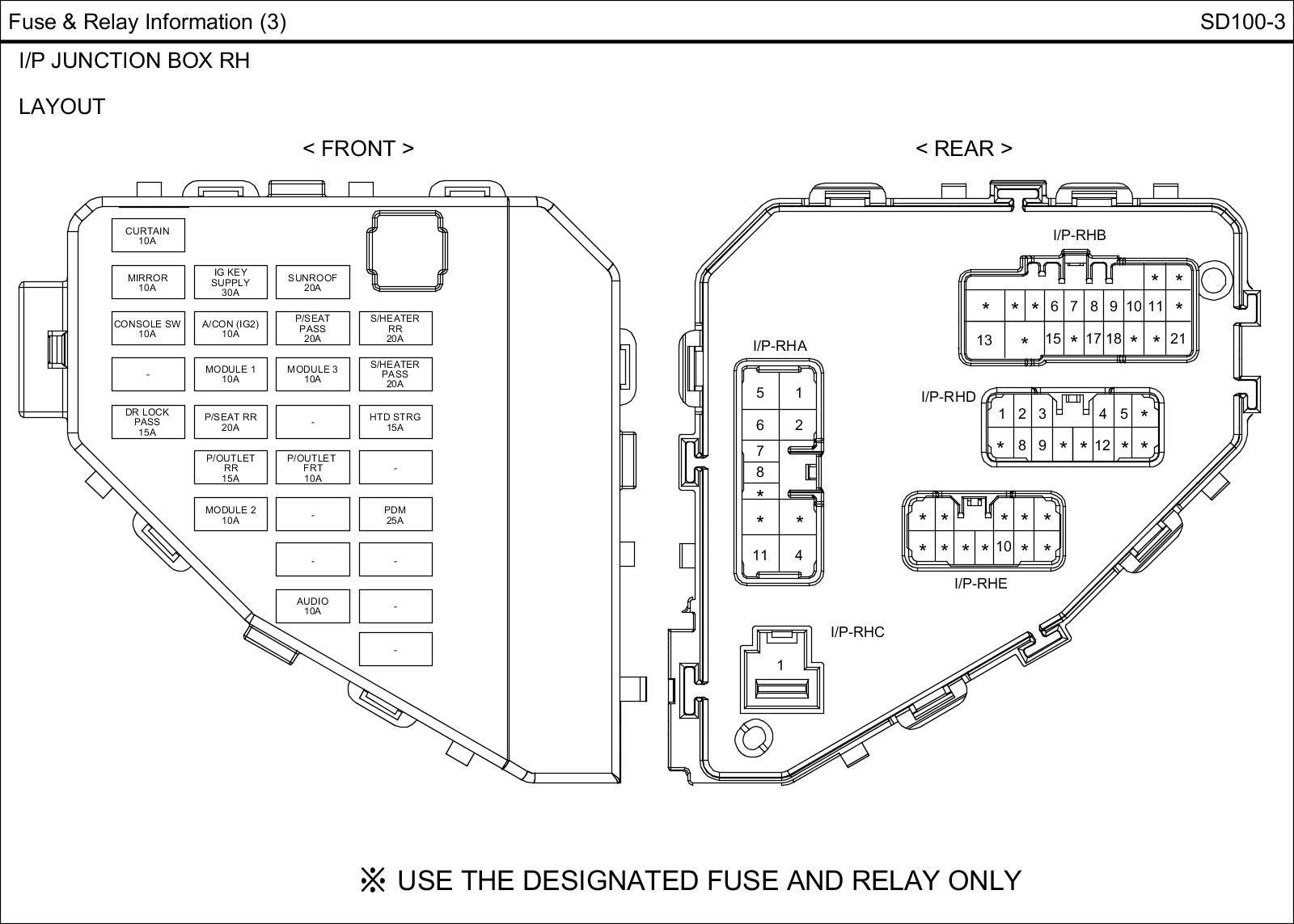 I/P Junction Box RH Circuit Details: