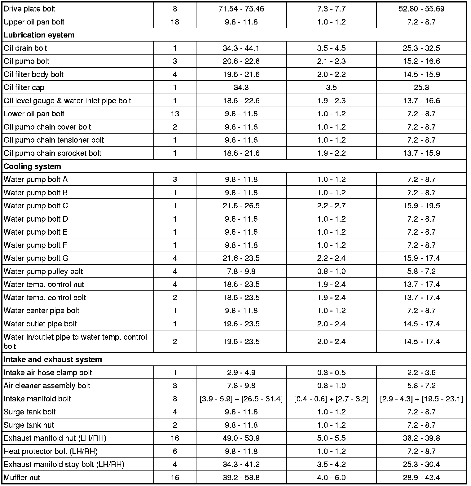 Tightening Torques
