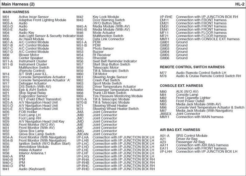 Main Harness Index: